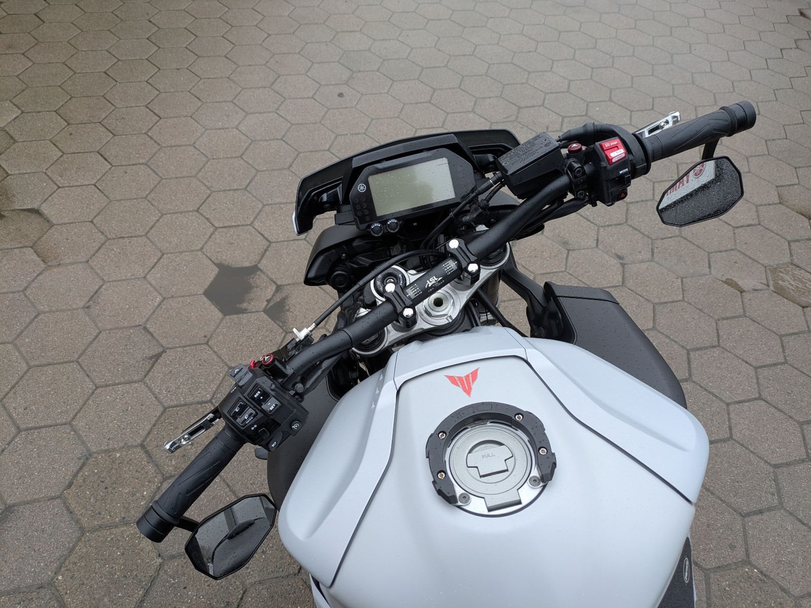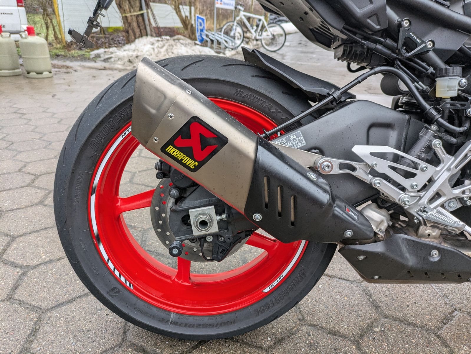 Die 10.000km Inspektion wird frisch gemacht. Reifenprofiltiefe vorne 3,5mm und hinten 4,5mm. Die Reifen sind Bridgestone S22.